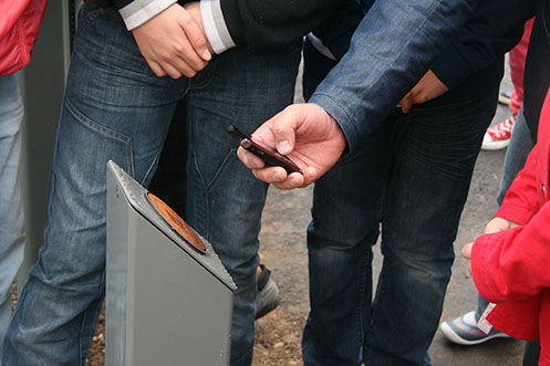 Pole with QR-Code; by scanning the code, additional information can be obtained via the website. Design DLA + landscape architects,