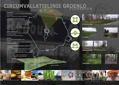 Commissioned by the the former municipalities Groenlo and Lichtenvoorde-Eibergen, Marc Kocken (with ADC Heritage) in cooperation with DLA + landscape architects conducted two studies providing a foundation for the development of the defense line and the fortifications of Groenlo. For various locations concrete suggestions for integration and visualization were developed.