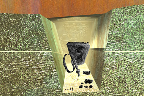 An unprecedented archaeological discovery was made in 1932 during equalization work on the heath at Oss. The discovery included a bronze bucket (situla), part of a burial gift beneath a turf mound. In 1997 the King’s grave was discovered. The discovered bronze bucket was buried in an older mound (52 meter in diameter) dating from the Middle Bronze Age. Even more grave structures and additional gifts were found around the mound. A private initiative, united in the Foundation ‘Vorstengraf Oss’, campaigned for the visualization of this unique piece of history. In collaboration with the former Rijksdienst voor Oudheidkundig Bodemarchief (now Cultural Heritage Agency) and the municipality of Oss, DLA + landscape architects was commissioned to develop a proposal for visualization. The aim was to give visitors a glimpse into the inner sanctum of the grave, the interment. This was achieved by cutting a narrow corridor out of the reconstructed mound. Marc Kocken was involved in the project as a heritage advisor for ROB. Since 2003, the site is marked by the ‘Vorstengraf’ monument.