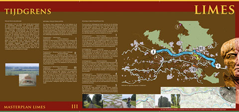 The province of Gelderland, the Arnhem Nijmegen region and the Programme Office the LIMES have joined forces to visualize the Gelderland part of the Roman Limes. The master plan, was prepared by Eric Luiten with Catherine Visser, Ed Joosting Bunk, Peter Paul Witsen and Marc Kocken.