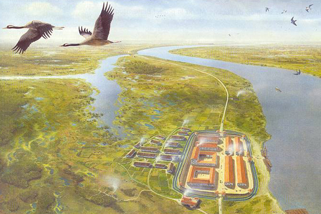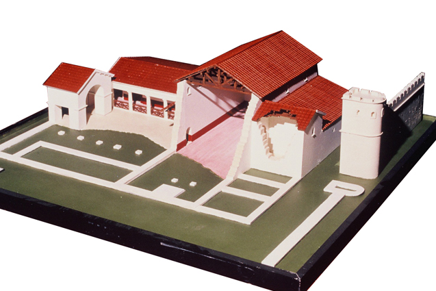 Reconstruction drawing of the castellum Zwammerdam, a smaller fort than Meinerswijk but with possibly the same elongated shape. Drawing: Ulco Glimmerveen
